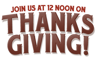 If you’re joining us, don’t forget to bring canned goods for our Cans for Caring Annual Food Drive. As a thank-you for giving back, you can save up to $15 off the Adult Buffet all day on Thanksgiving Day!